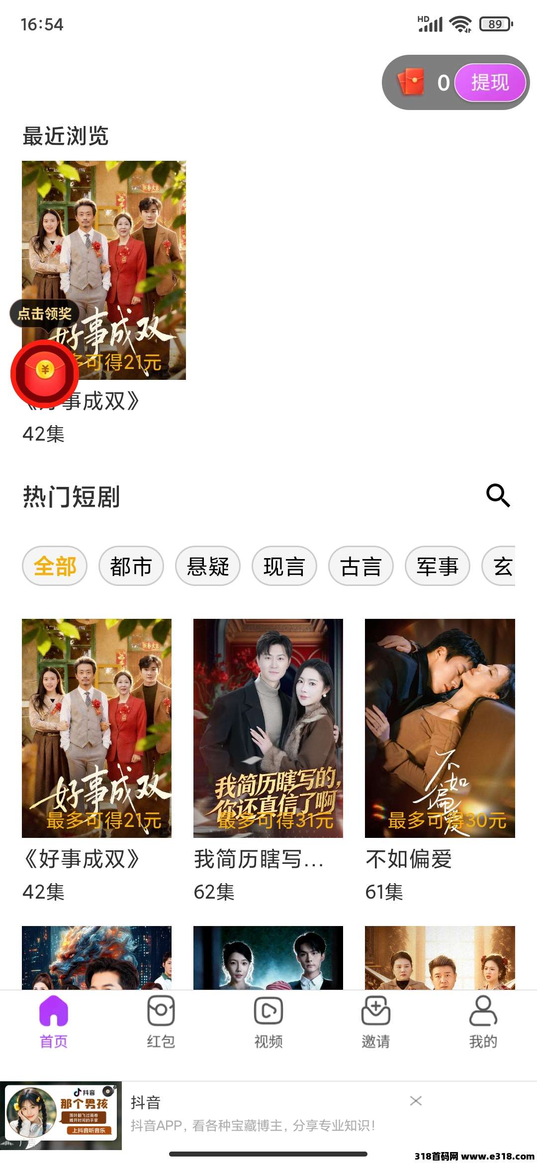 还有另外一个赚金币方法。在首页点开一个电视剧。然后选集,看激励视频解锁。