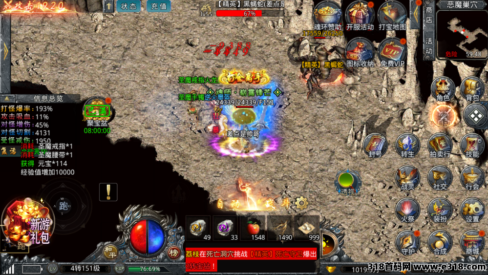 散人首选法师道士,挂机刷材料,一晚上收益轻松破500+。