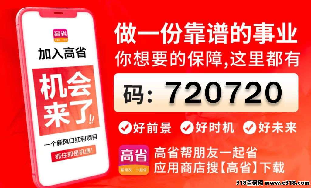 高省邀请码720720,注册送2皇冠会员【高省】APP(高佣金领导者)是一个自用省钱佣金高,分享推广赚钱多的平台,2000万用户信赖的六年老平台,稳定可靠。高省APP佣金更高,模式更好,终端用户不流失。高省是公认的返利最高的软件。