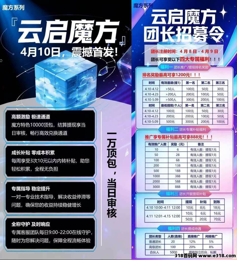 首码〖云启魔方〗首次预付高额扶持,零撸广告赚,不养机保底收益高邀请日入百米,顶包1米,单机每天轻松20-50+,免费提供不养机玩法教程,扶持拉满,待遇置顶!