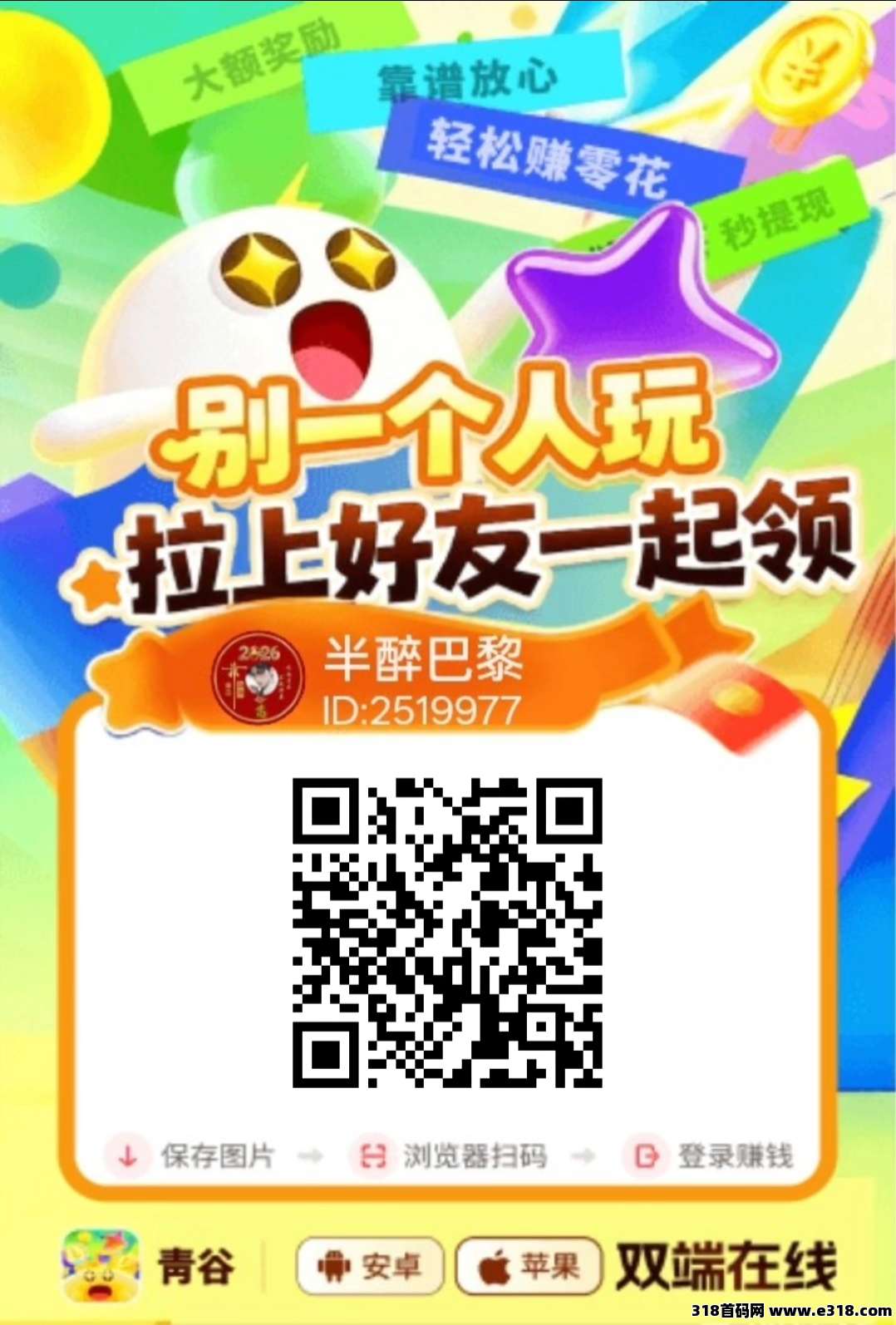 首码青谷,首次预付高额扶持,零撸广告赚,不养机保底收益高,大放水,人人秒撸几块,单机每天30-50+,免费提供不养机玩法教程,扶持拉满,待遇置顶!