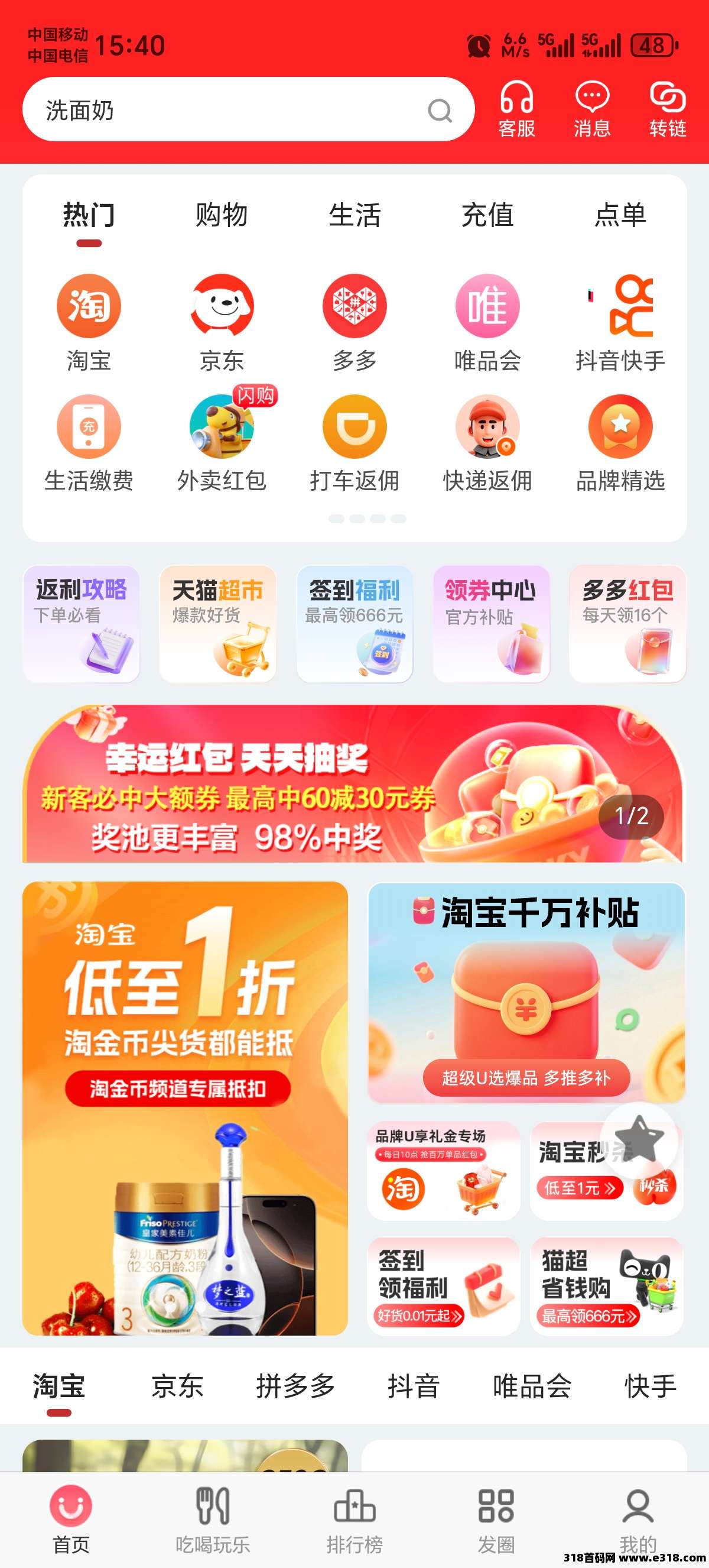 平台核心亮点突出,无需囤货、无需押金,一部手机即可轻松上手。对接淘宝、京东、拼多多等主流电商平台及美团、饿了么等生活服务平台,提供大额隐藏优惠券与高比例返利,平均返利比例较行业均值高出40%,1元起提、零手续费,提现秒到账,全程透明无套路。
