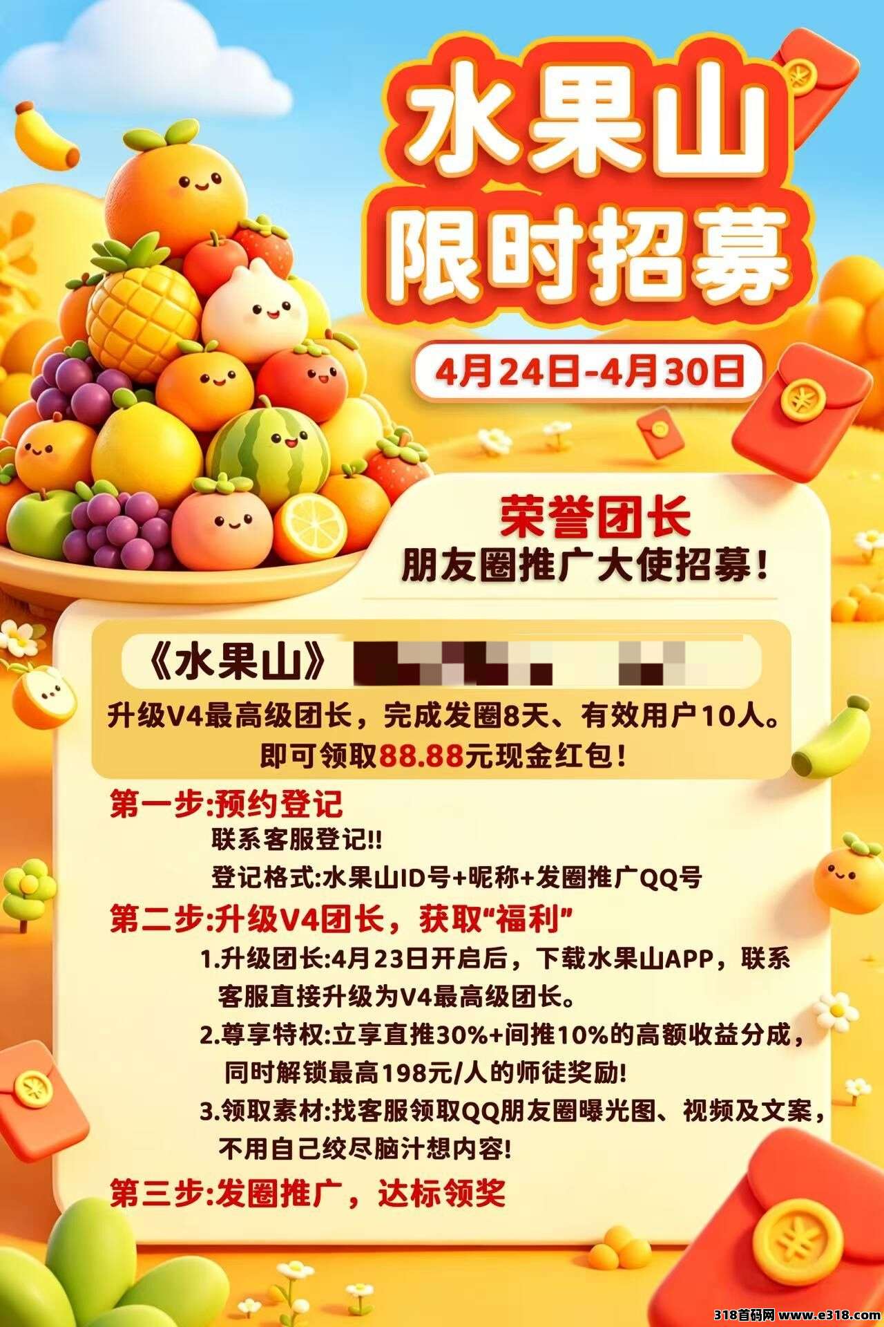 首码水果山,首次预付高额扶持,零撸看广告,不养机保底收益高