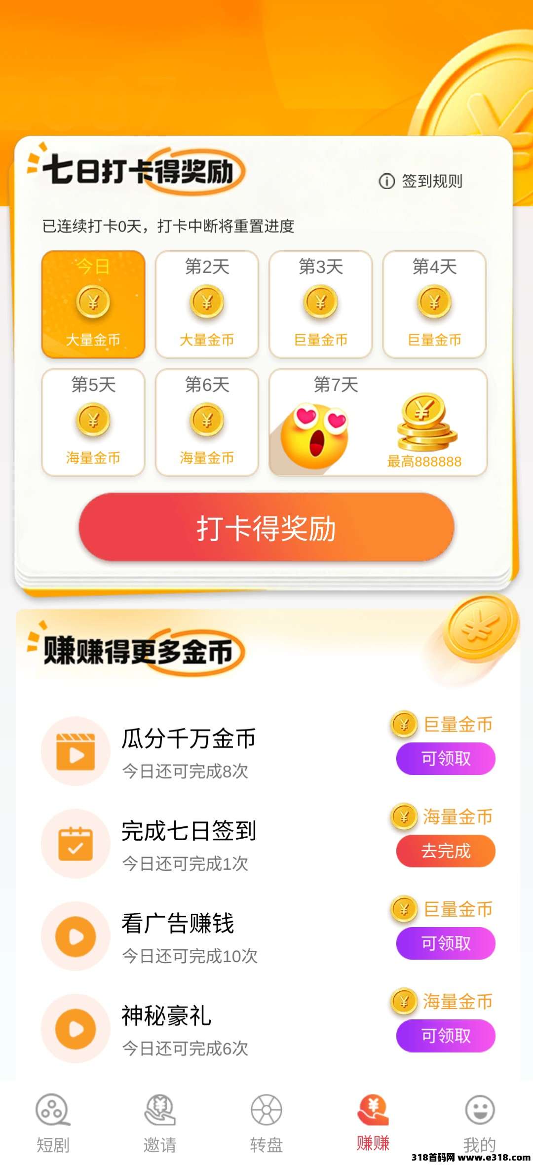 短剧➕转盘➕签到得金币