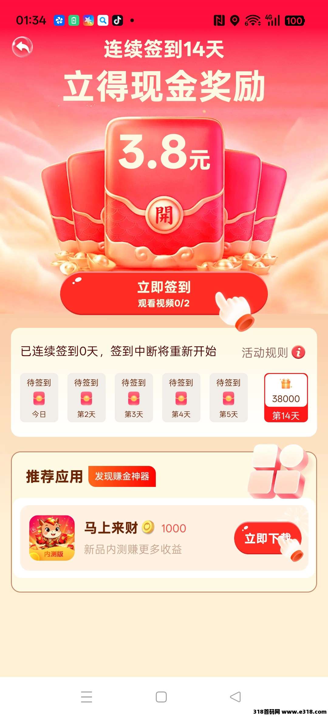 马上来财!内测零撸广告赚,保底收益高放水中,高额补贴,新品上线,邀请日入百米,团队模式,