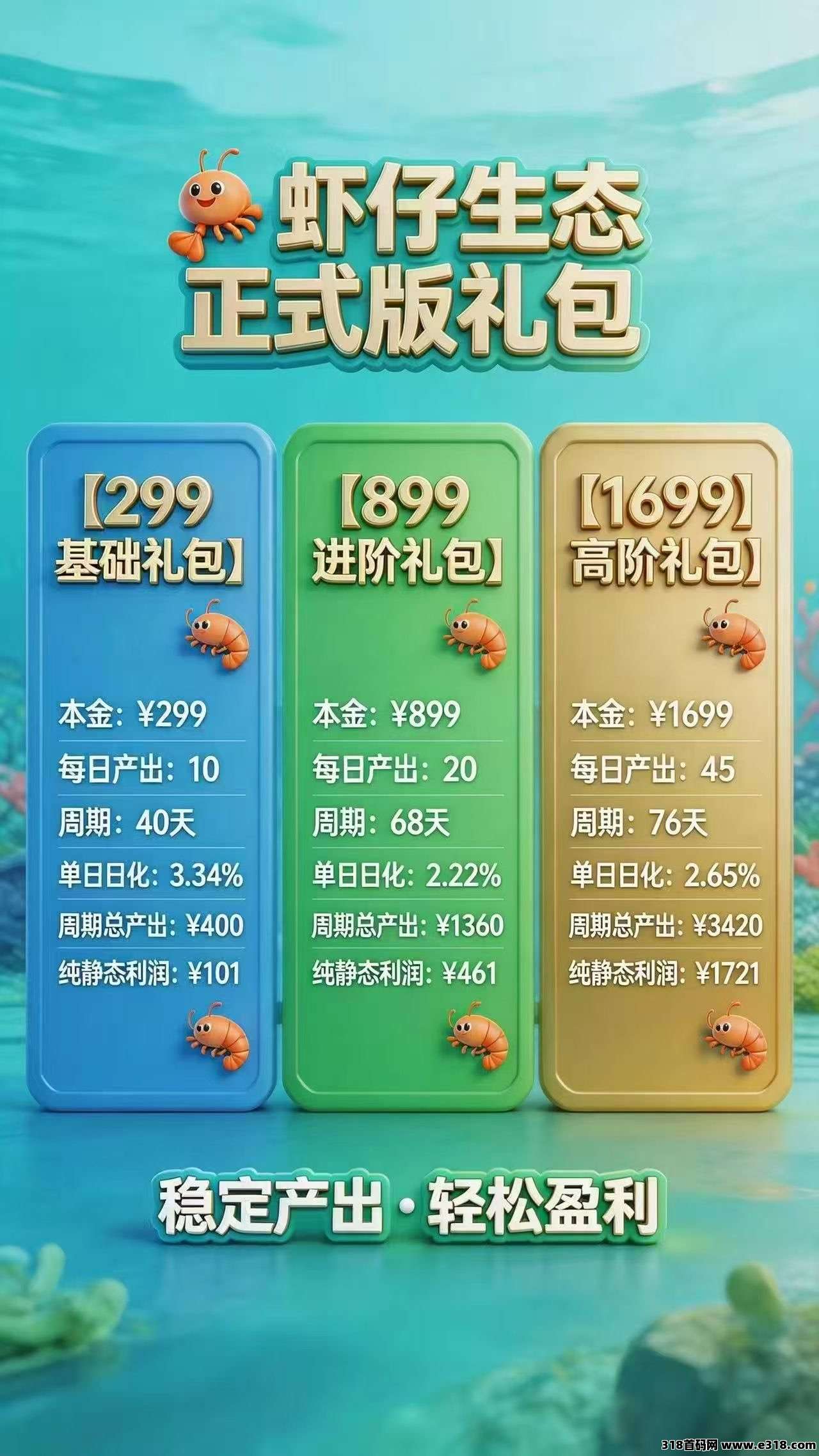 虾仔生态正式版礼包|日*化+周期总产出+纯利润