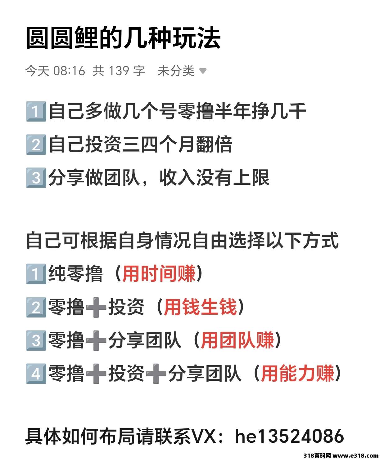 圆圆鲤是一款零撸加速产出的一个卷轴橡木