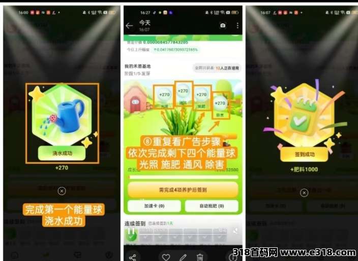 每天看6个广告完成养护签到任务,24小时自动产积分,积分每日自动上涨增值,越攒越值钱,积分每日释放到钱包可提