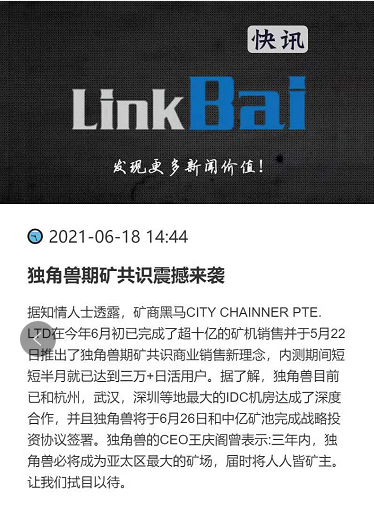2021币圈全新模式,史诗级大项目正式启动,创新模式,完美解决传统项目最后一批人只能成为接盘侠的行业痛点!系统稳定,已亲测!无泡沫,止损重生机制公开透明,本金随进随出,复利模式,主流实体奇亚矿机托底。