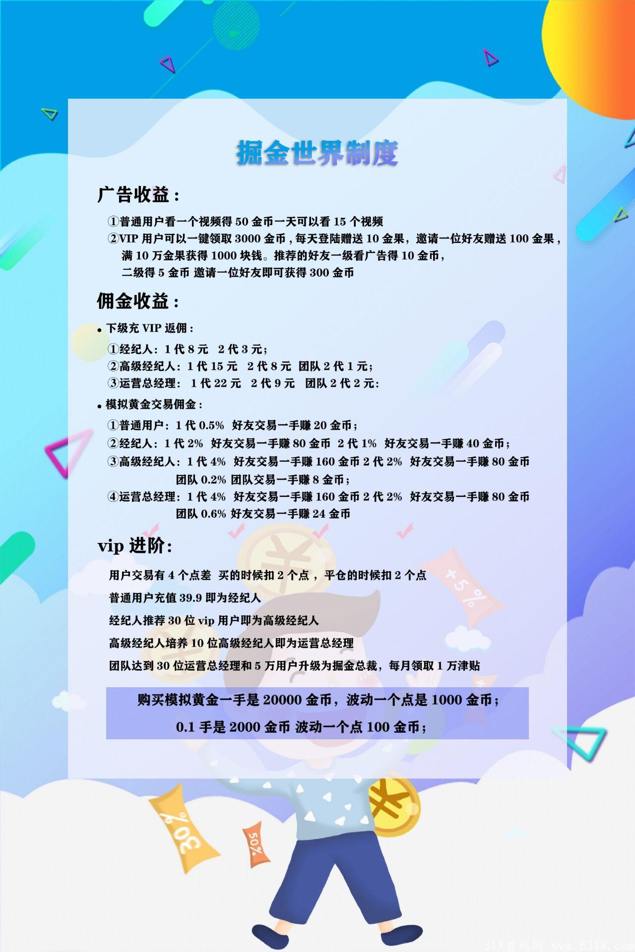 掘金世界7月10日火爆来袭,市场交易团队**获取金币,金币赚不停,成为平台会员后推荐好友可最高获得22元现金奖励,同时好友推荐好友注册可最高在获取9元,裂变模式,未来在家躺着也能赚钱