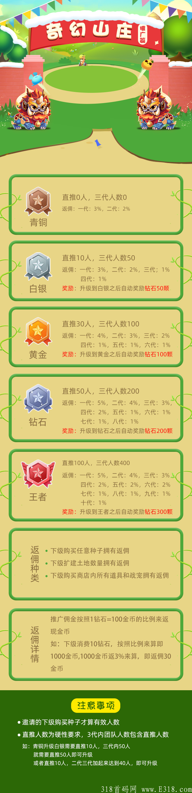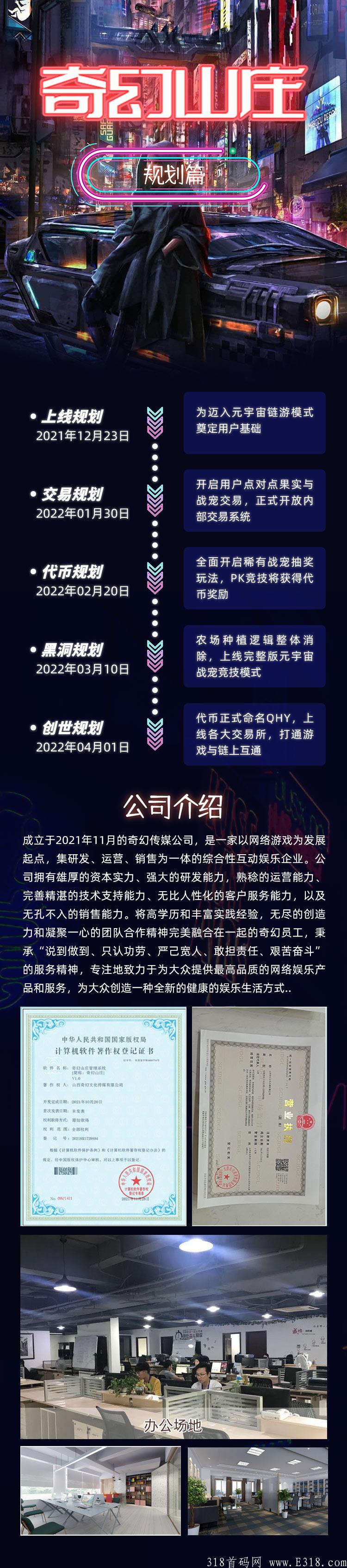 奇幻山庄史诗级项目,重磅来袭。农场模式后续,奠定用户,明年1月进击战宠等模式,进入全新领域,各种福利,等级礼包,宝箱,福利大厅,幸运转盘,每日签到,在线礼包,成就系统。日常任务,战宠系统,游乐园等等活动福利多多,新用户投资少5元即可进入农场后续进入元宇宙基础。高收益,团队系统各种福利收益,高推广高收益,轻松每天躺赚4位数以上,心动不如行动,农场元宇宙值得你的到来。