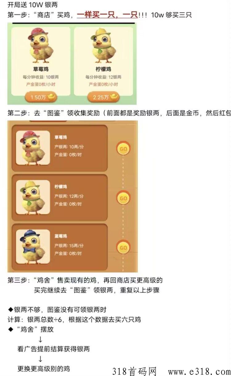 1.开局先把银b花完,把能买的鸡都买一遍,然后去图鉴领取奖励,后面按照视频操作就可以