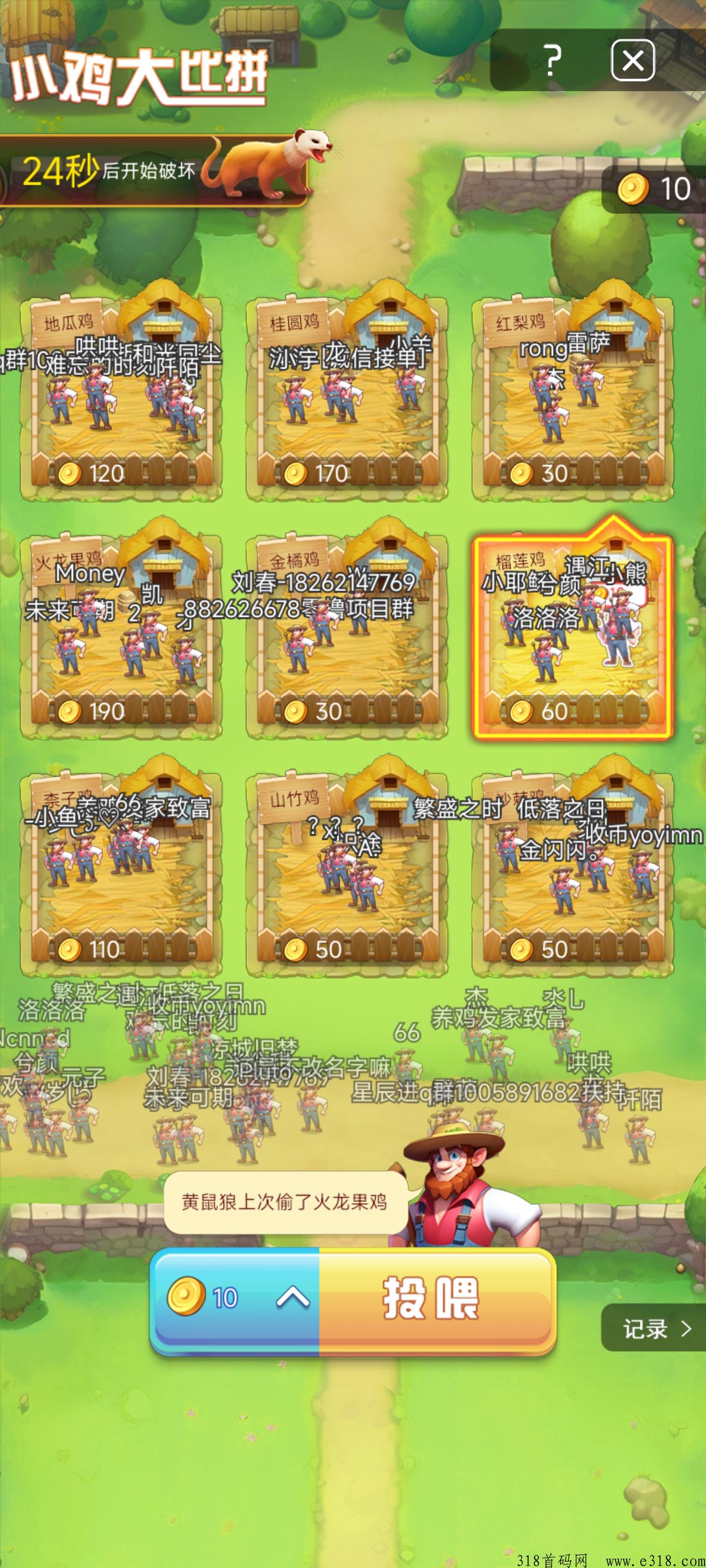 3.买到6个香瓜,然后攒银b开礼盒,开出稀有鸡可以卖金b,也可以留着鸡下蛋?,蛋可以抽金b