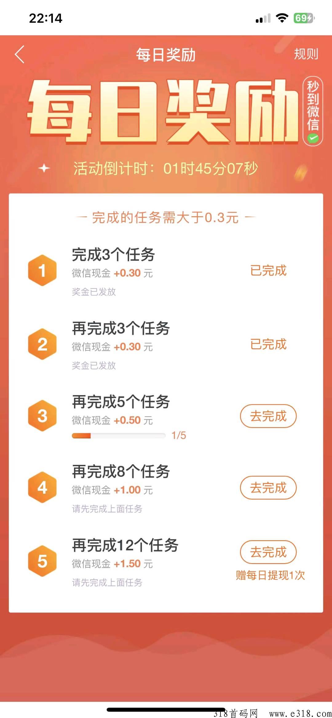 每天完成任务还有奖励 新人更有大h包奖励