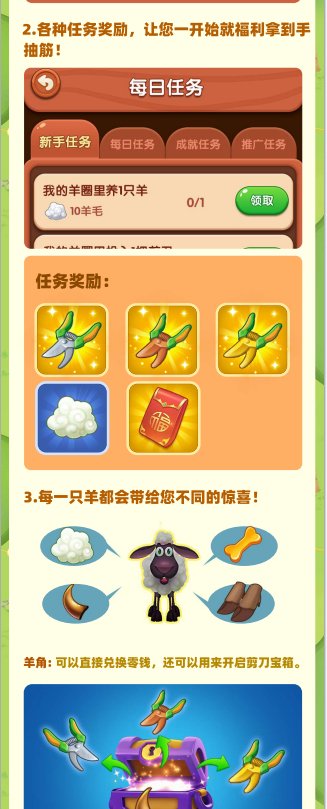 总而言之,快乐剪羊毛是一款集娱乐和收益于一体的全新APP,独创模式和丰富玩法将为您带来无限乐趣和丰厚收益。不妨加入我们,一起探索这个全新的世界吧!