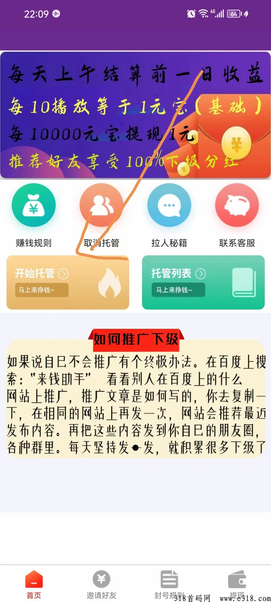 1、【首页】~【开始托管】,获取托管二维码,分别使用抖音跟快手扫码托管就行,托管之后什么都不需要操作,不影响抖音正常使用。