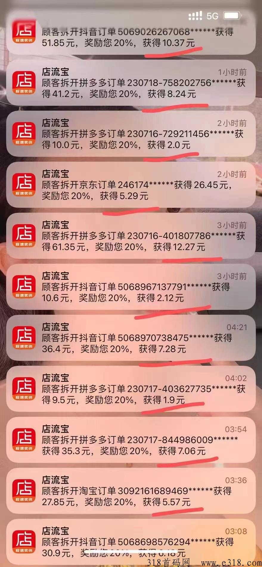 可免费注册,自用省钱,通过店流宝app在这五大平台购物,可领取隐藏的优惠券,购物后还可回到店流宝拆h包