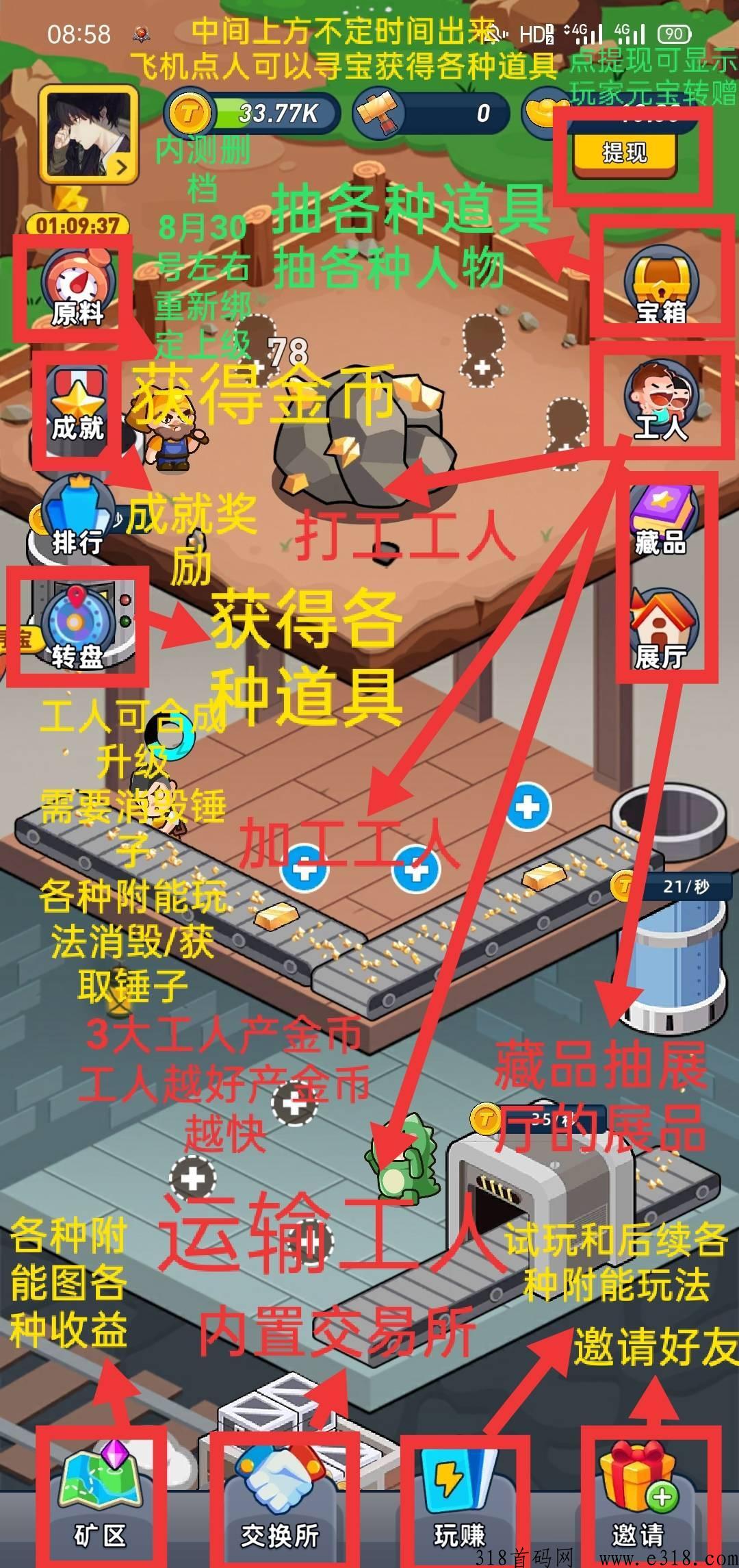 《淘⾦城镇》是兆纳科技于2023年全新推出的⼀款⽹赚+模拟经营类游。在游戏中,玩家经营个圹加,通过不断升级各产线的员来提整体产出并赚取现奖励。