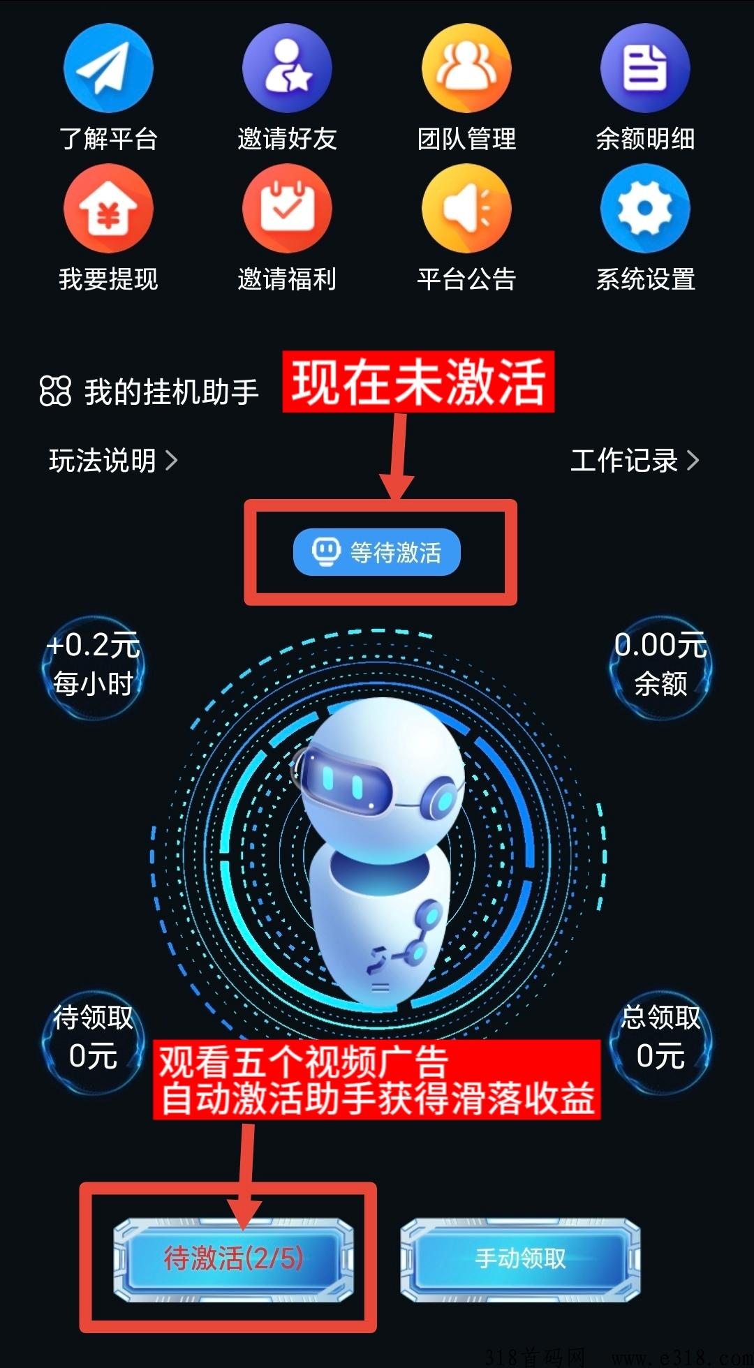 注册看5个视频激活AI,每小时收益0.2元,收益4.8元