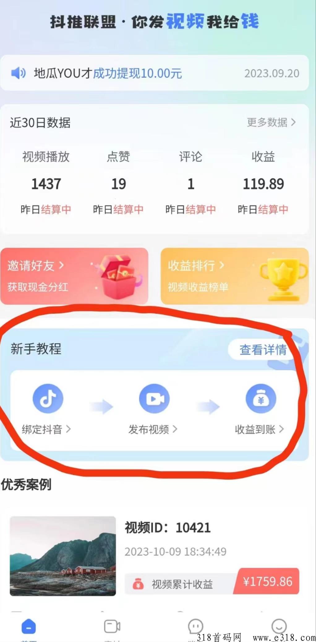 抖推联盟:已上架安卓和苹果商店 开年会员168,每天可发两个素材,每天只需1-2分钟即可完成任务 日收益9元以上,上不封顶 【体现秒到】