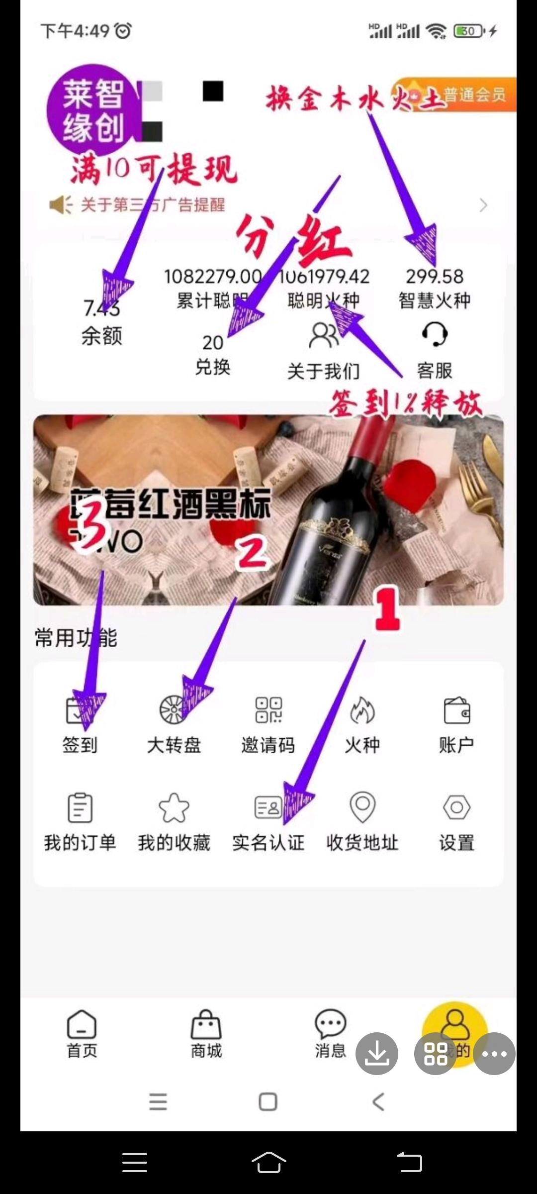 2,你的团队中有新增加实名认证的用户就可以获得点普通转一次获得聪明火种。