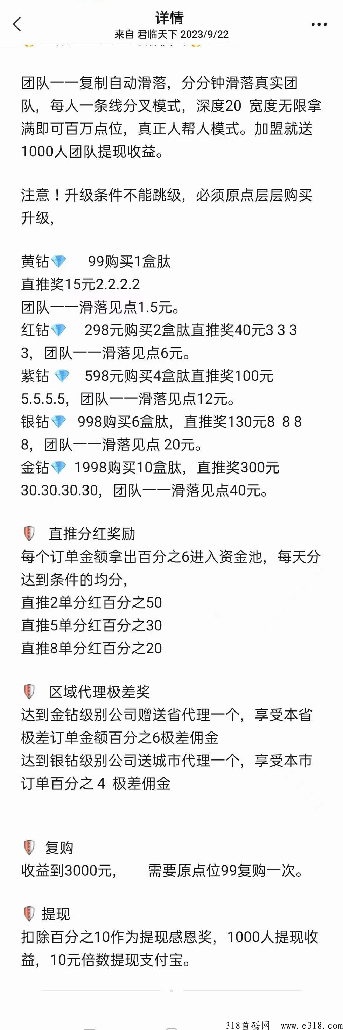 | 免责声明:合作之前建议签订合同,318首码网作为信息共享平台无法对信息的真实性及准确性做出判断,不承担任何财产损失和法律责任,若您不同意该提示,请关闭网页且不要在本站拓展任何合作,否则造成的任何损失由您个人承担。 | |