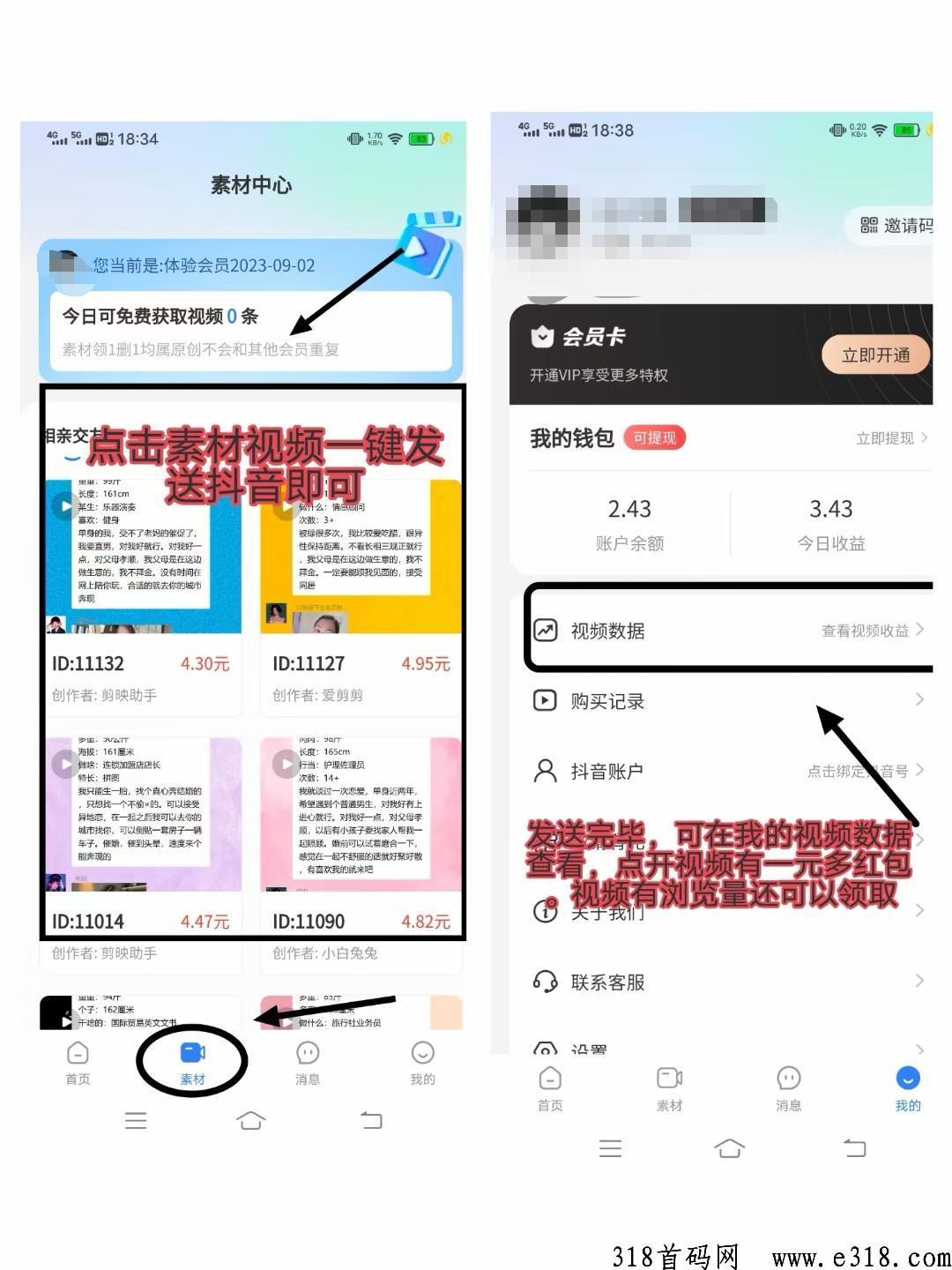 2.一键跳转抖音或快手发素材