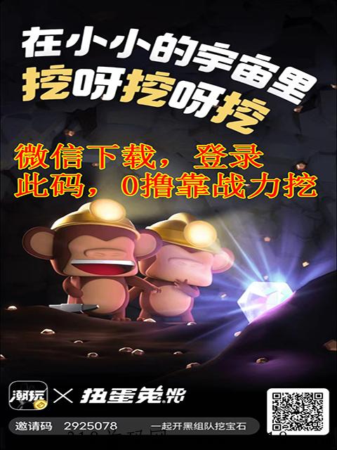 两种方式管道收益:第一种、实名认证,新人注册免费收益一月或本金147,一月回本,购7张无猿猴自动收入宝石,随时变现;第二种、无需本金,扭兔单,靠每天免费开蛋升级战力自动收入宝石,随时变现。注册好后暂时不升级,因升级需要消耗7个猴子!