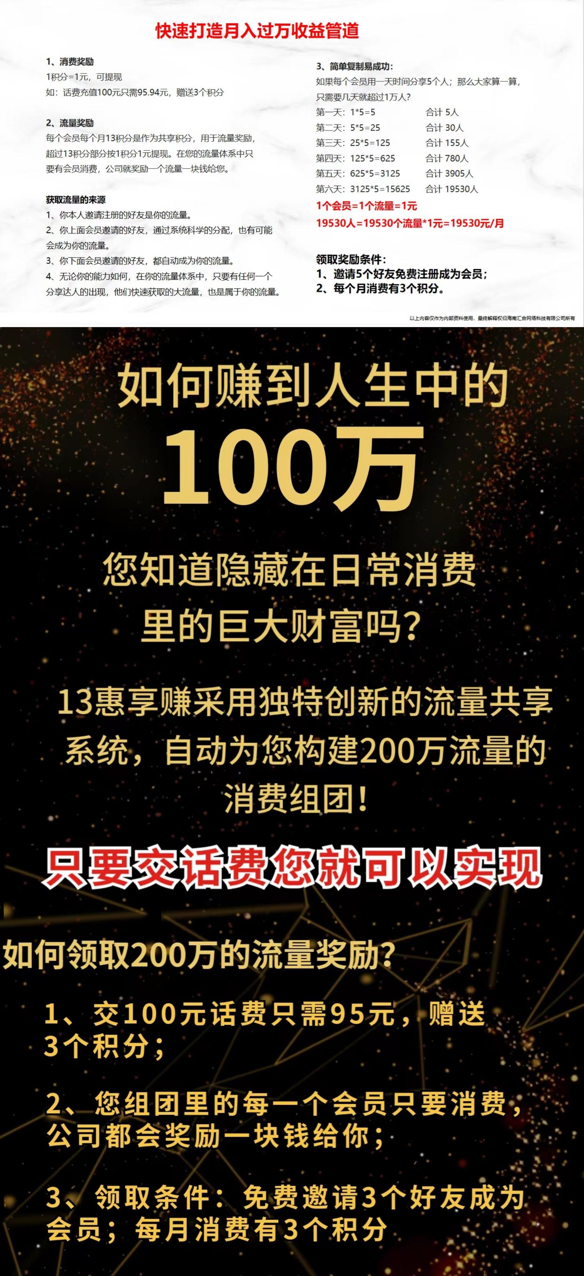 不用花一分钱,你只需往系统里推荐三个人,系统会自动裂变,自动杯 增,给你流量池输送上百万人。人脉就是钱脉。