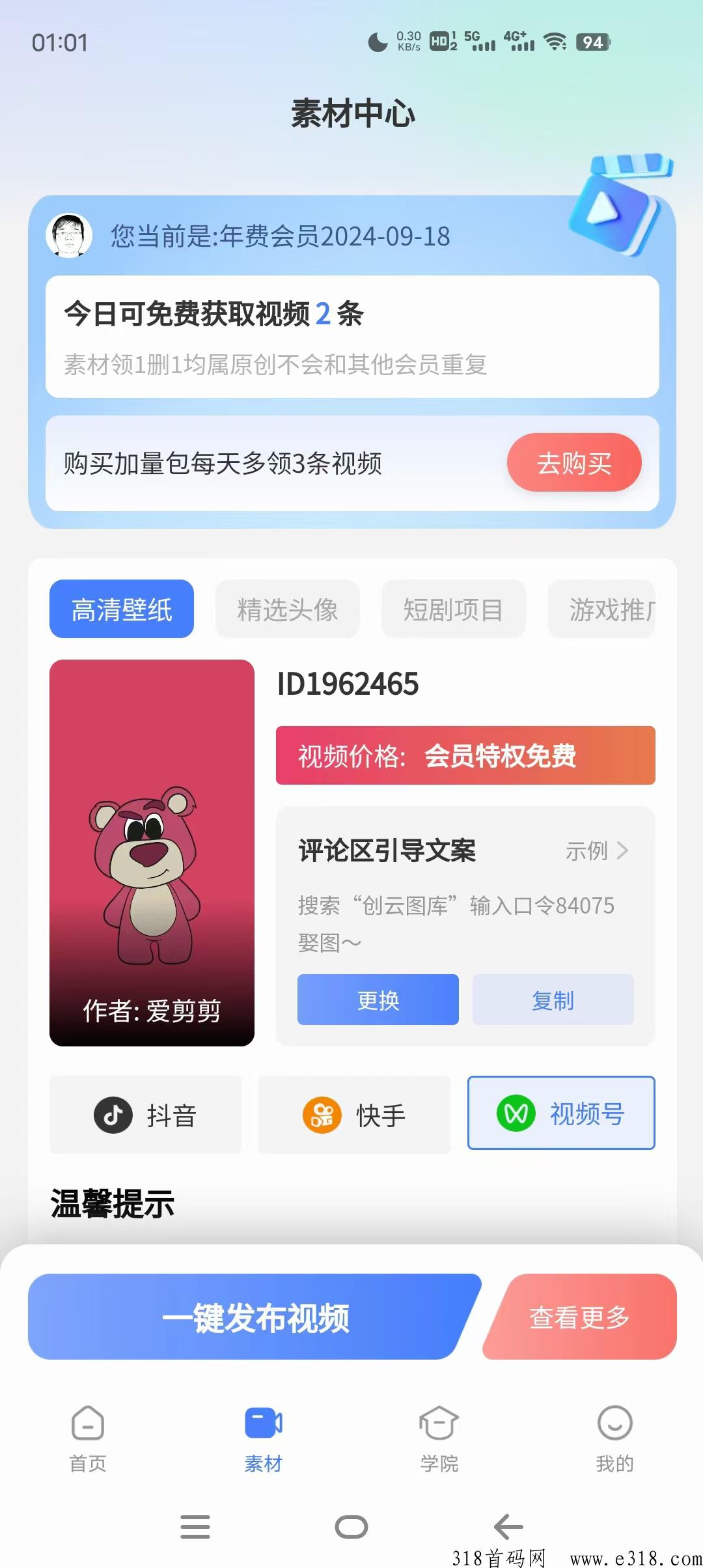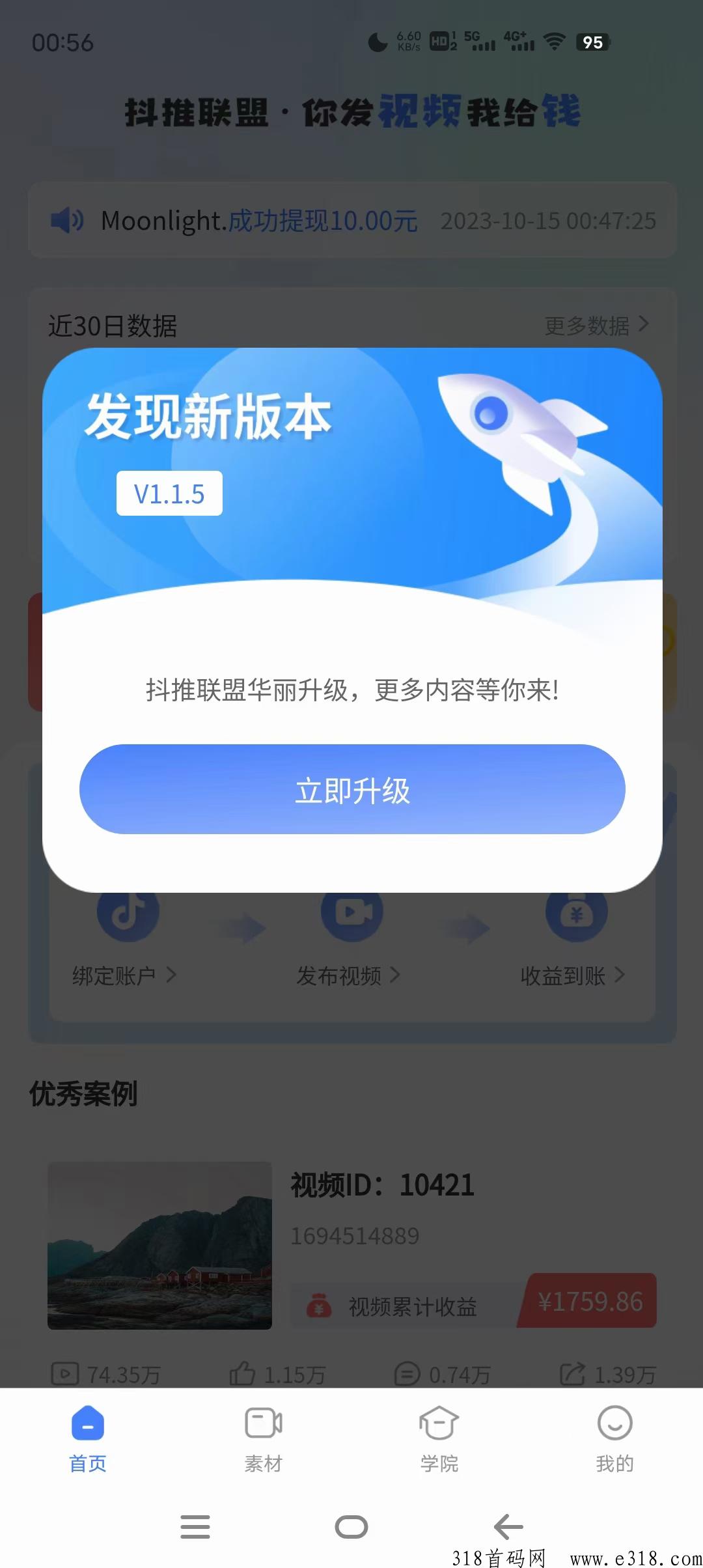 每天可发2条作品,每条作品收益4-5元,2条有8-10元,提现秒到