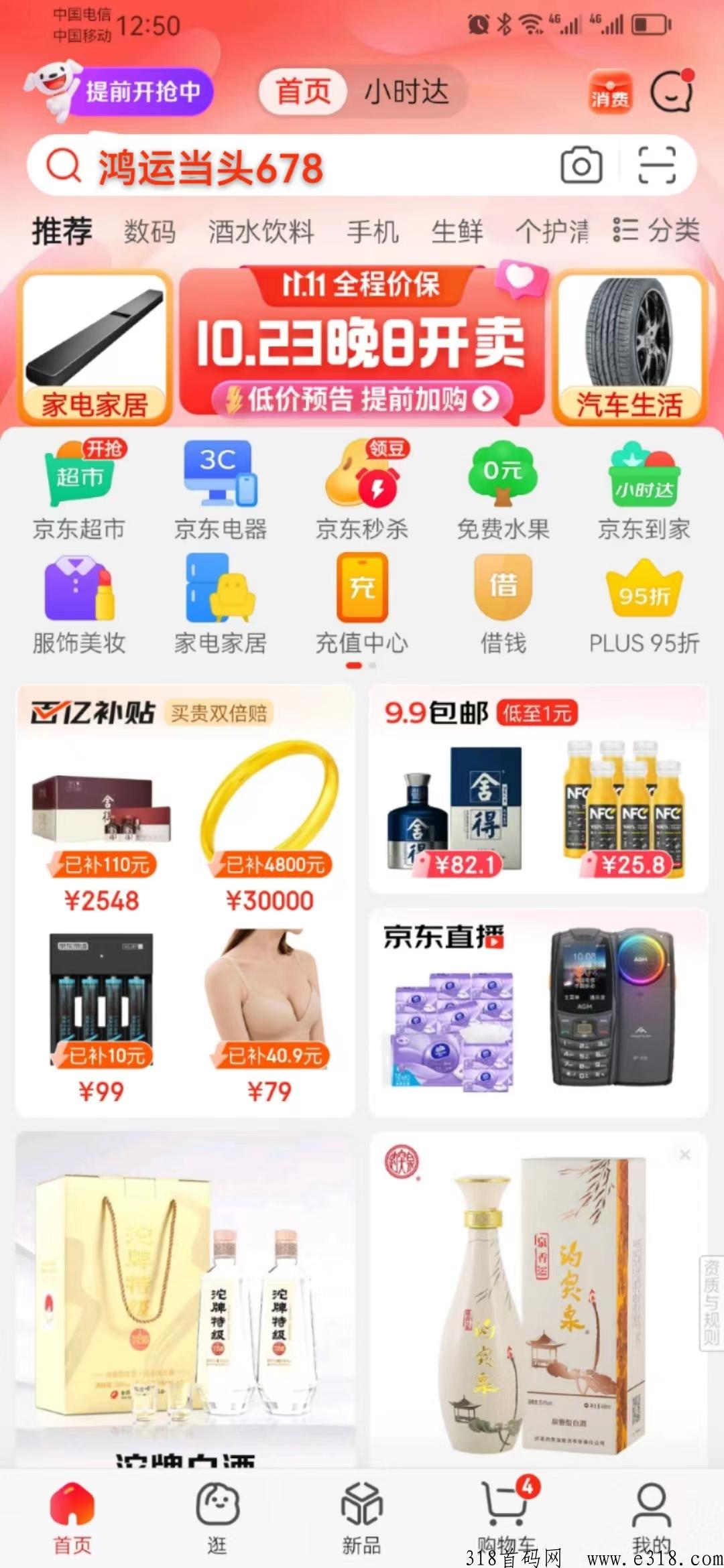 进入京东,点击首页搜索框,输入京东双11红包密令:鸿运当头678,然后进行搜索。