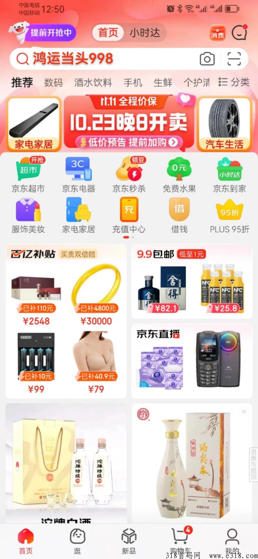 进入京东,点击首页搜索框,输入京东双11红包密令:鸿运当头998,然后进行搜索。