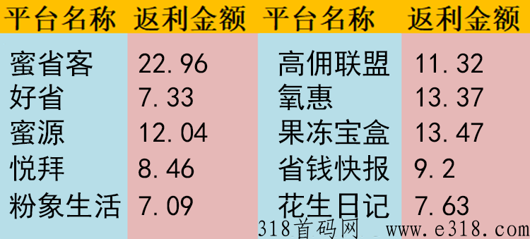 结论:对于返利用户的来说,如果从返利比例来说,在这次测评中获得榜首排名的是蜜省客。