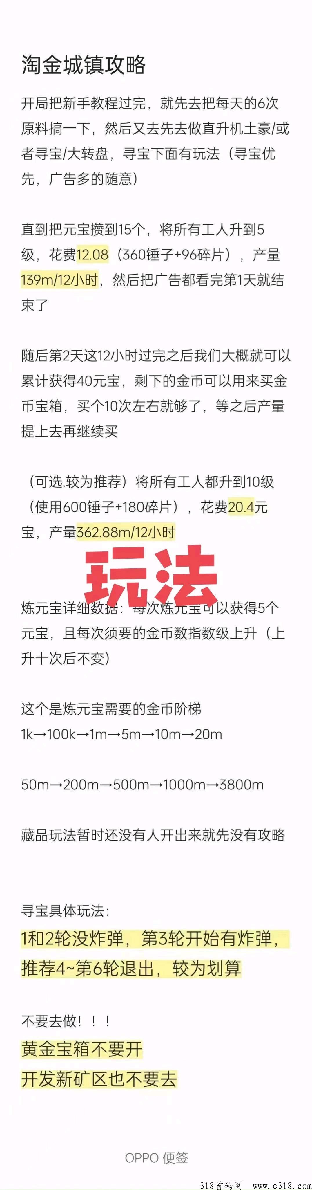 0撸-淘金城镇 月撸300+ 玩了两天 收入确实可以 才推荐的,