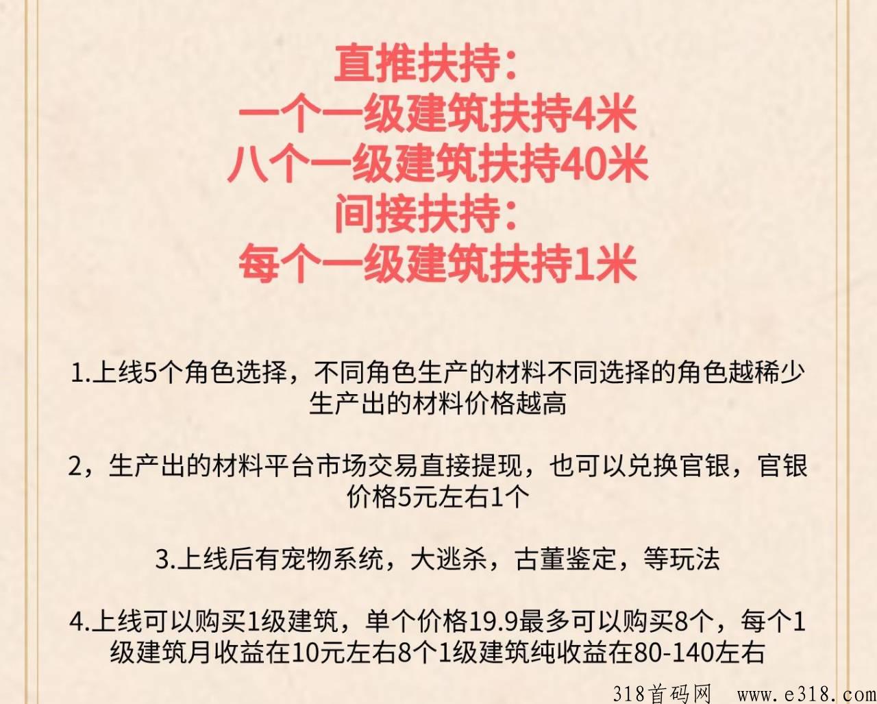 三、可购买1级建筑19.9最多8个,每个月收益10元左右,8个就是80-140