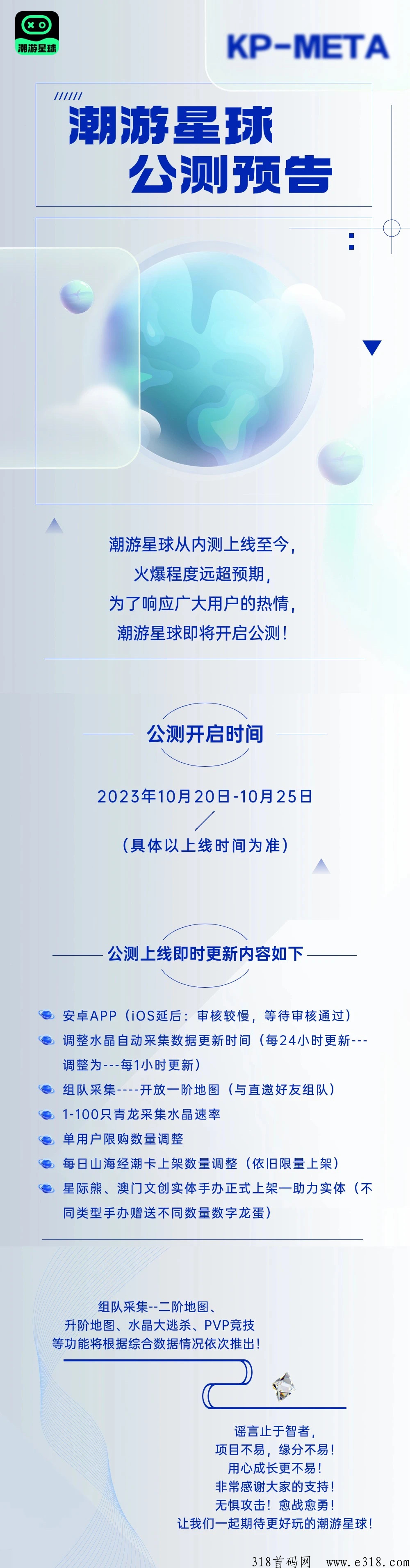 潮游星球app集:个人采集水晶、组队采集水晶、升级水晶场,都在开发,等公测第二阶段更新后上线,据说还有更多新颖玩法!潮游星球,首码公测中,潮玩宇宙升级版,别错过!