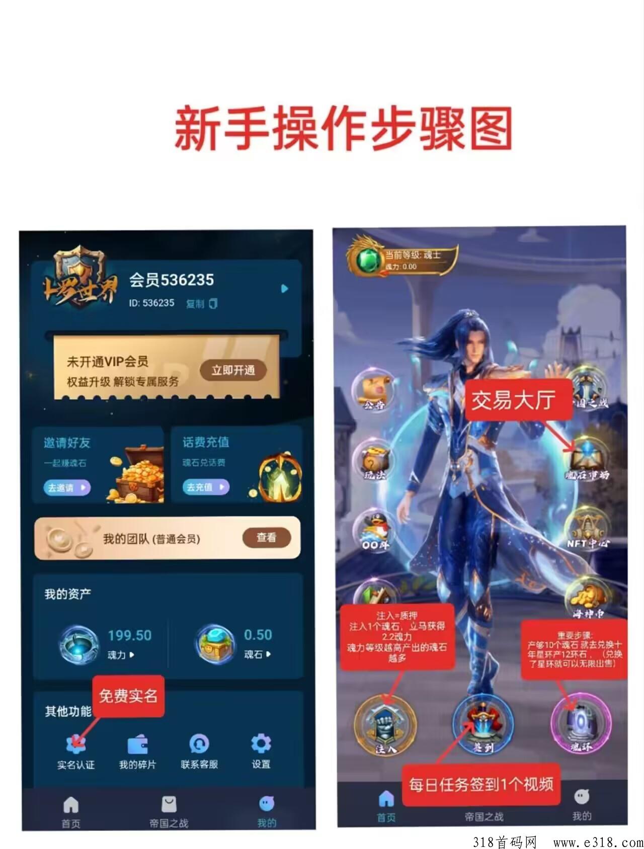 支付宝授权实名,注册送200魂力,每天签到看1个广告得0.5魂石,满1魂石可注入得魂力,魂石目前价格3一个