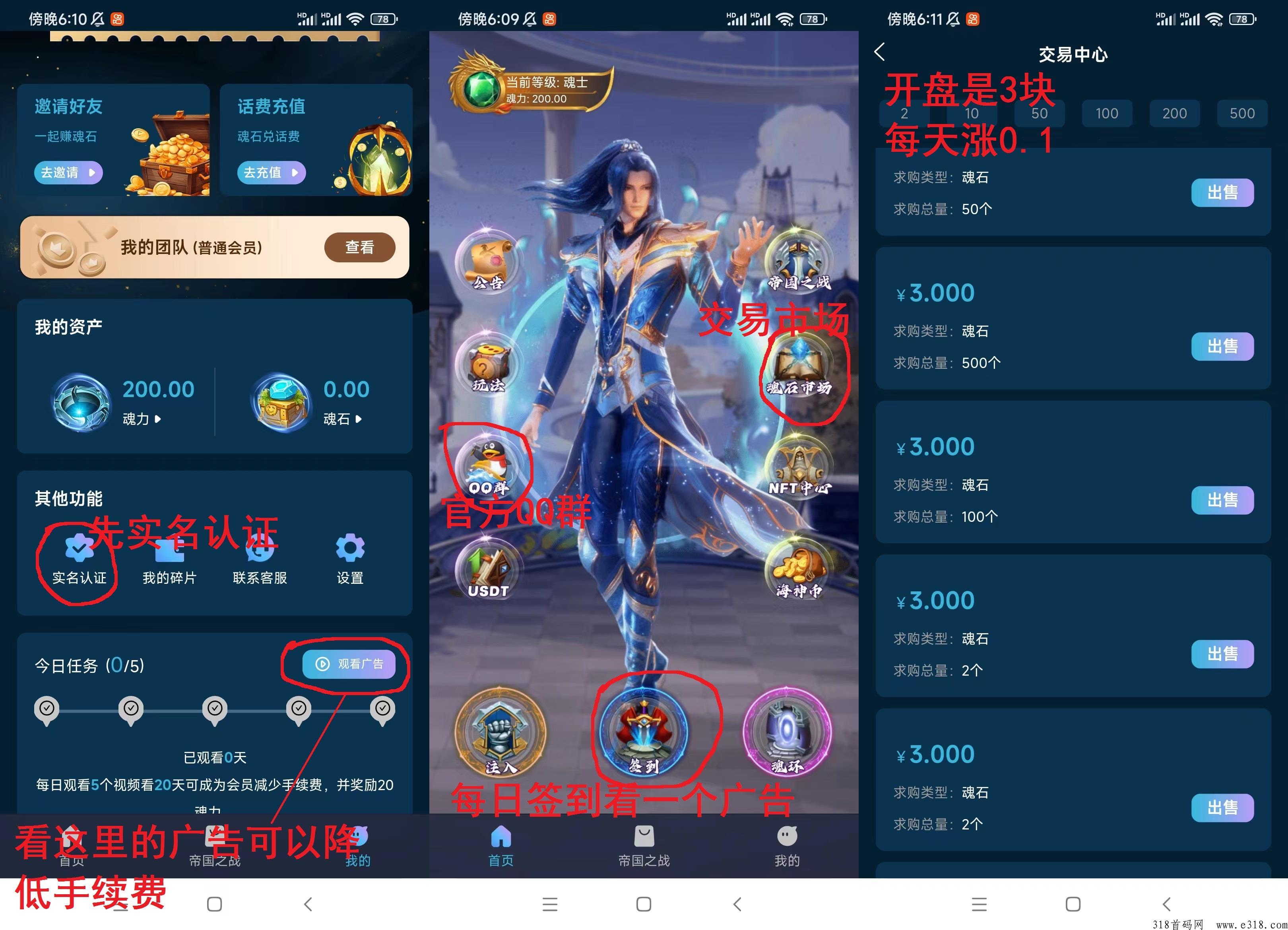 注册简单实名送200魂力,每日签到一次**0.5魂石