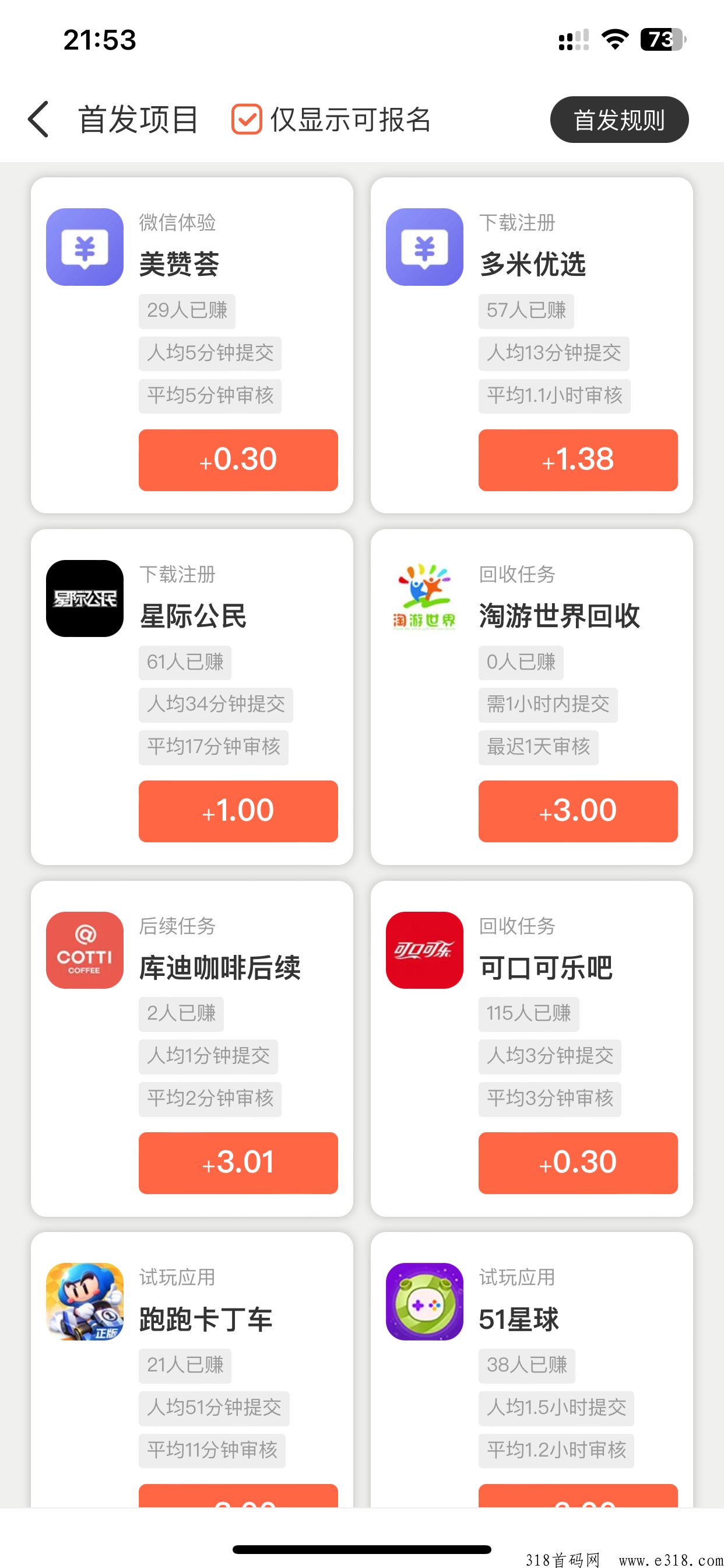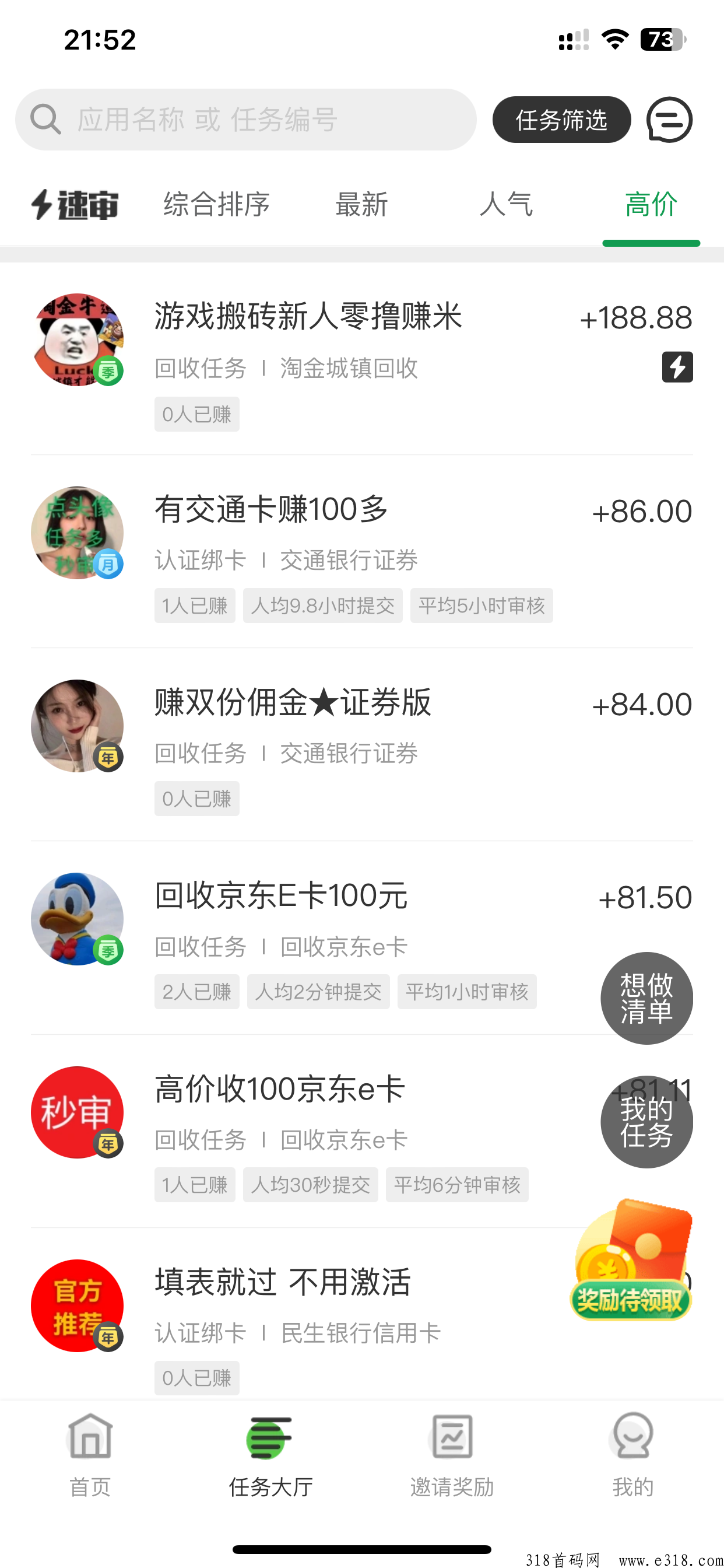 任务也是超多的有高价的简单的 根据自己爱好 几秒钟就能完成的任务也好 简单到比如一个公众号关注即可获得任务奖励