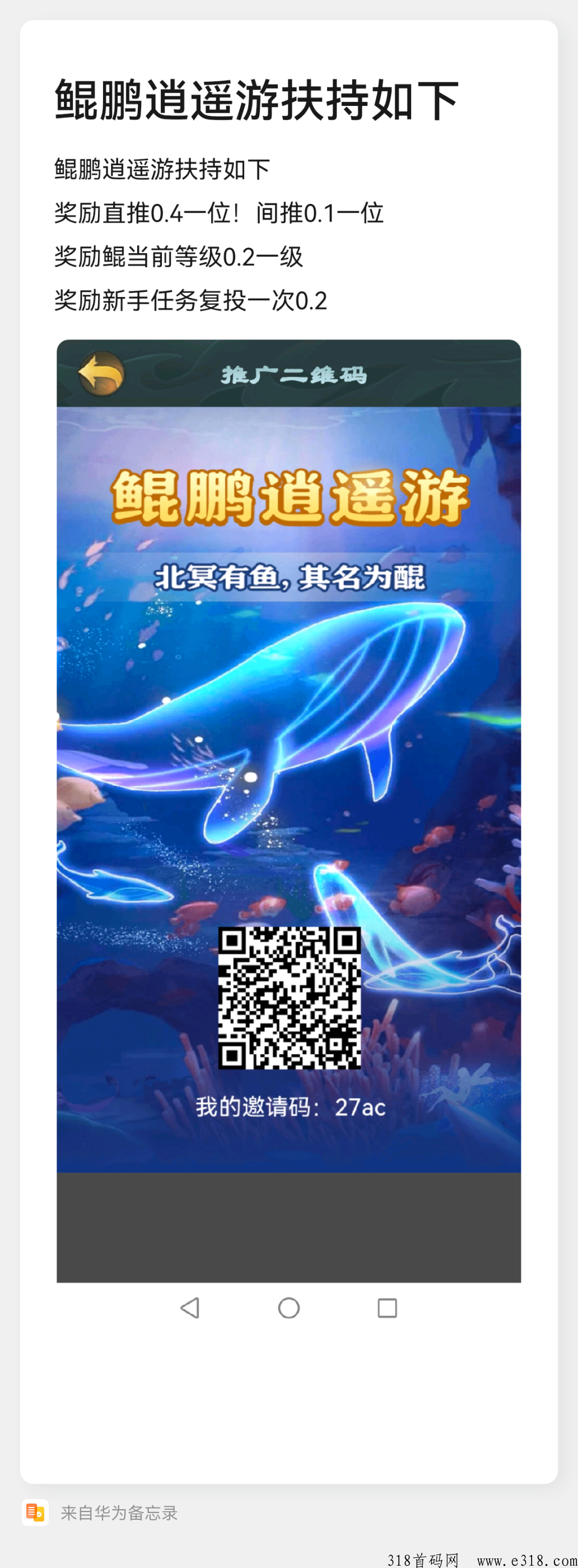 其中包括(好友开通鱼苗任务、好友升级神兽鲲鹏、好友完成悬赏任务、好友完成游戏任务)你都可以获取鱼苗等奖励