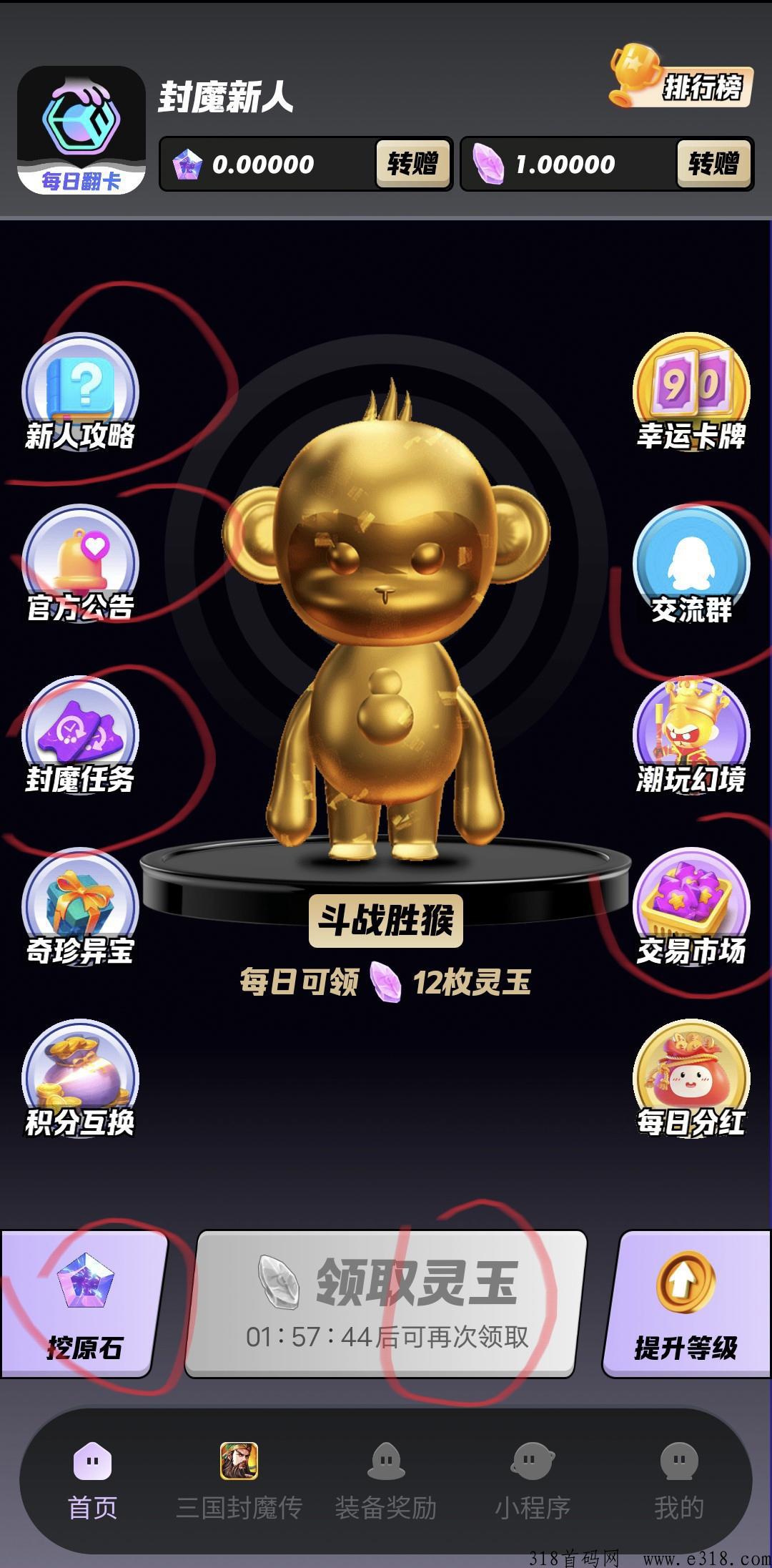 注册即送7只潮玩猴每日挖原石,平台所有积分可以互换互通